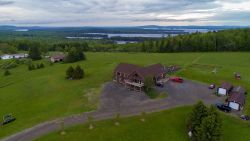 With breathtaking views of Mt. Katahdin and the East Grand Lake Region, the First Settlers Lodge offers a haven from the outside world with first class amenities. An unparalleled 42-acre private estate or commercial venture on US-1. Bordered by permanent conservation land, this four-season sanctuary guarantees ultimate privacy and endless adventures. A place to reconnect with family, friends, guests or nature whether sitting by the fireside or out on the direct trail access with hiking boots, snowshoes, cross country skis, ATV’s, ITS trail for snowmobiles or your favorite rifle during hunting season. East Grand Lake is renowned for its world class fishing and boating. The four-season lodge has something for everyone…reunions, retreats, celebrations, meetings, fishing, hunting, or the forgotten art of relaxing. The lodge offers a main residence plus a guest wing, perfect for multigenerational living or a commercial entity while living on site. It includes 6+ bedroom suites, each with a private bathroom, plus a large bunk loft for gatherings. A stunning chef’s kitchen with commercial-grade appliances, dining room, a great room with a fieldstone fireplace and pellet insert. The guest rooms are in separate wings, while the upper level overlooks the great room, plus a guest room with full bath and deck offering views of East Grand Lake. The lower level offers a specious meeting or event room along with private living space for the owners and an in-law apartment. This is a turnkey property, fully furnished and equipped for a seamless transition. Some of the features included are a 2023 Chevy 2500 Duramax truck with a Boss plow, Polaris Ranger UTV, & multiple trailers. Enterprise-grade UniFi WiFi 6, security camera system, and dedicated AC units for all suites. Three large outbuildings (two 10x30, one 10x20) for all your storage needs. A true legacy property combining total privacy, modern comfort, and direct access to the best of Maine’s outdoor recreation.